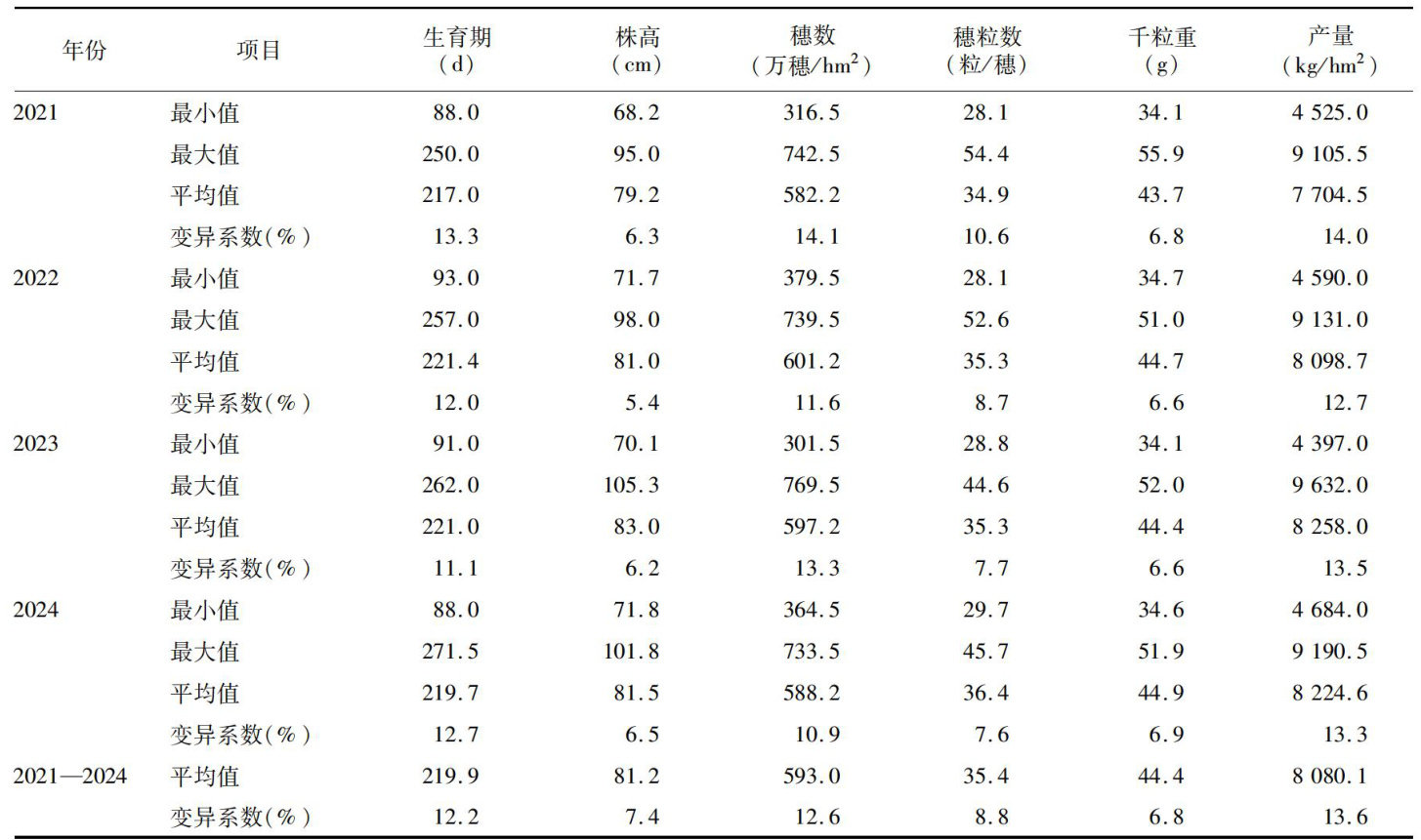 近年来我国小麦品种产量与农艺性状变化趋势及不同生态区间差异分析