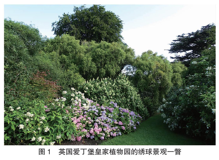 在英国爱丁堡皇家植物园观赏‘马里斯丁香 色’绣球窦剑