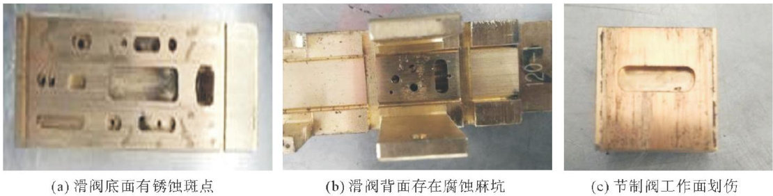 Abstract:The wear failure of thefriction pair of control valves is one of the main factors that restricts the maintenance period of pneumatic control valves of railway freight cars in China.In2Ol7,after the local structural improvement of control valves,the leakage of control valves decreased significantly,but there are still corosive spots and pits on the working faceof the guiding valve,and scratcheson the working face of the closing valve,which risk the failure of the control valve. This paper analyzes the above wear problems, compares and tests the durability of control valves. The results demonstrate that the burr of guiding valves is easy to aggravate contact surface wear,and that the spot on the botom surface of guiding valves is mainly caused by silicon oil and gas erosion. Suggestions are put forward for improving the friction pair of control valves.