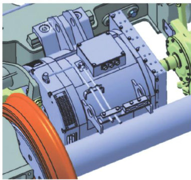 架悬式永磁直驱转向架继承了抱轴式永磁直驱转 向架高传动效率、低牵引能耗、低维护成本的优点[1-3],同时,将电机从轴悬方式变更为架悬方式,使电机质量成为簧间质量,簧下质量更小,更有利于降低轮轨作用力和改善列车运行品质,减小轮轨维护成本。(剩余3957字)