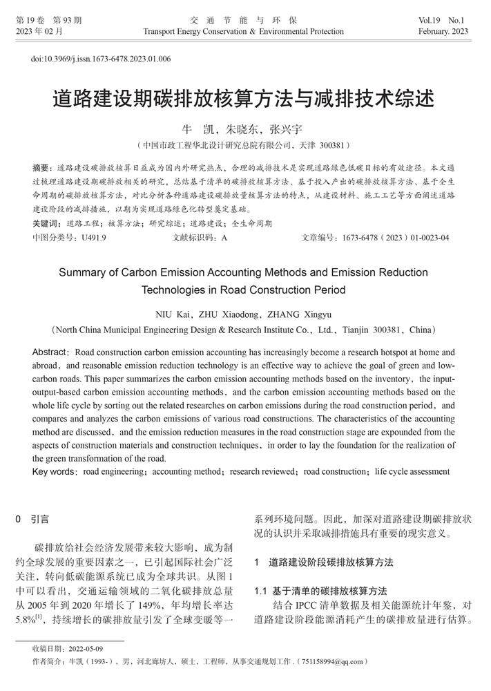 摘要:道路建设碳排放核算日益成为国内外研究热点,合理的减排技术是实现道路绿色低碳目标的有效途径。本文通过梳理道路建设期碳排放相关的研究,总结基于清单的碳排放核算方法、基于投入产出的碳排放核算方法、基于全生命周期的碳排放核算方法,对比分析各种道路建设碳排放量核算方法的特点,从建设材料、施工工艺等方面阐述道路建设阶段的减排措施,以期为实现道路绿色化转型奠定基础。(剩余5390字)