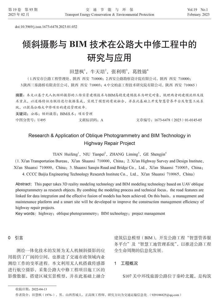 关键词:公路;倾斜摄影;BIM技术;项目管理