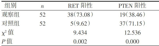 乳腺癌组织中RET、PTEN水平与临床病理特征的相关性及其诊断乳腺癌的效能