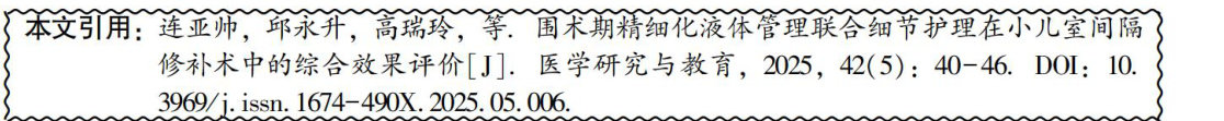 围术期精细化液体管理联合细节护理在小儿室间隔修补术中的综合效果评价