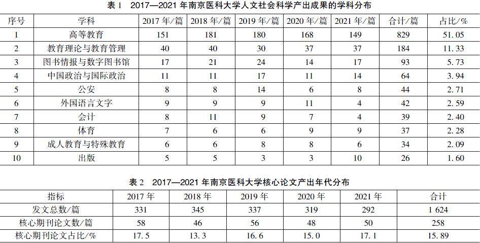 2017—2021年南京医科大学人文社会科学期刊论文研究状况的分析与评价