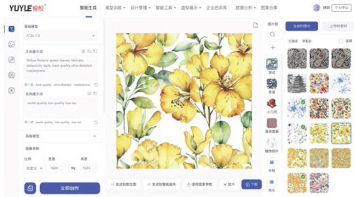 愉悦家纺依托在工业设计、全流程数字制造和智能管理等方面的深厚积淀,于2024年启动“愉悦AIGC设计平台”建设项目,借助生成式人工智能(AIGC)技术,聚焦“设计智能化”与“设计智库”,构建以图案设计为核心的智能系统,结合企业在家用纺织品领域的图案设计知识与实际应用需求,形成“创意生成一智能管理一客户响应一虚拟展示”的闭环生态。(剩余1231字)