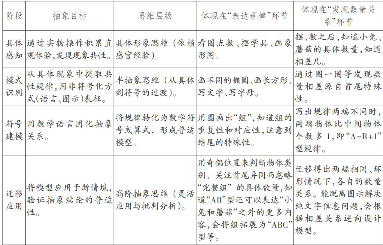《义务教育数学课程标准(2022年版)》指出:“抽象能力主要是指通过对现实世界中数量关系与空间形式的抽象,得到数学的研究对象,形成数学概念、性质、法则和方法的能力。抽象能力是形成理性思维的重要基础,贯穿于数学知识产生、发展、应用的过程中。"苏教版三年级上册“间隔排列”就含有对数学抽象能力的培养要求,笔者结合教学实践,试谈对数学的相关思考。(剩余4366字)