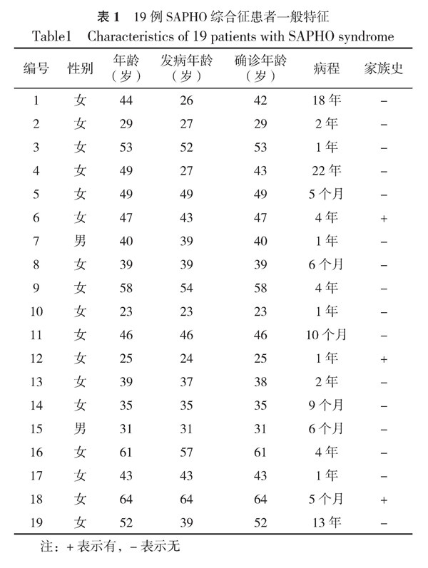 【摘要】 背景 SAPHO综合征是一种罕见的影响骨关节和皮肤组织的慢性炎症性疾病,该病病因及发病机制不明,临床表现多样,目前尚无特异性的诊断指标及统一的治疗策略。目的 分析19例SAPHO综合征患者的临床特征,以提高临床医生对该病的认识。方法 回顾性分析2013年10月至2021年12月在中国中医科学院西苑医院风湿科门诊就诊的19例SAPHO综合征患者的临床特征,分析患者的首发症状特点、骨关节及皮肤受累特点、实验室及影像学检查、合并症及手术史、用药及随访情况、误诊情况。(剩余17020字)