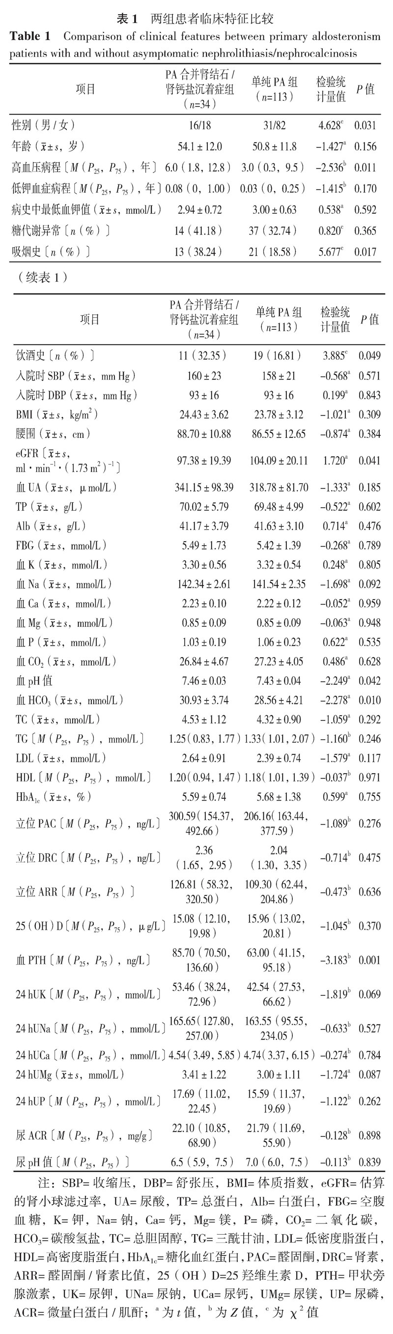 原发性醛固酮增多症合并无症状肾结石/肾钙沉着症的特征及其影响因素研究