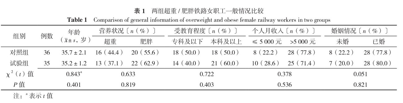 基于在线互动的每日称重干预对铁路超重/肥胖女职工减重效果的随机对照研究