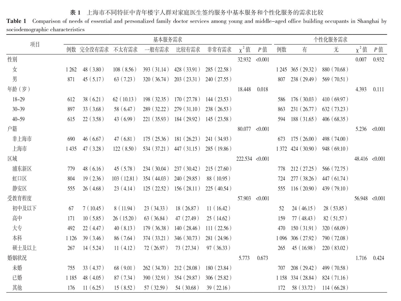 中青年楼宇人群对家庭医生签约服务的需求及影响因素研究