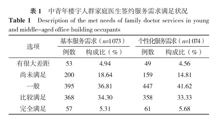 中青年楼宇人群的家庭医生签约服务需求满足状况及影响因素研究