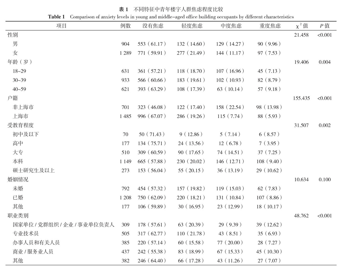中青年楼宇人群焦虑状况及影响因素研究