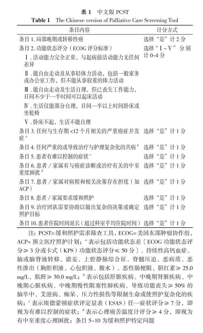 住院癌症患者缓和照护需求筛查工具的汉化及临床验证