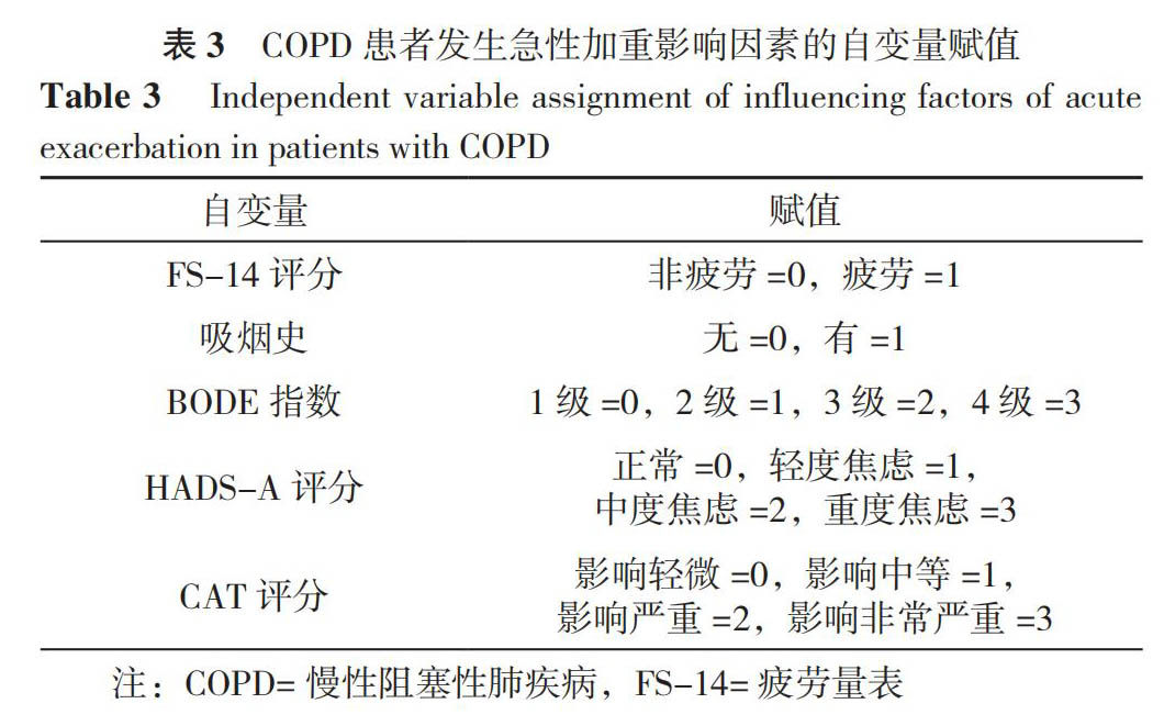 疲劳对慢性阻塞性肺疾病患者急性加重影响的前瞻性队列研究