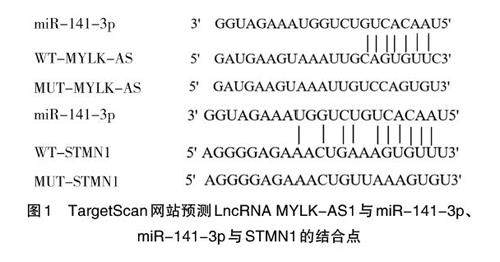 LncRNA MYLK-AS1 调节miR-141-3p/STMN1 轴对胃癌细胞增殖、凋亡和侵袭的影响