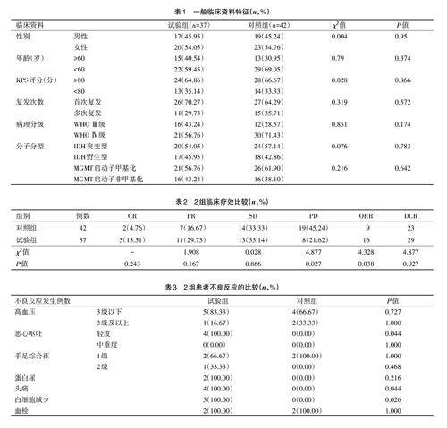 替尼泊苷动脉化疗联合贝伐珠单抗在复发高级别脑胶质瘤的临床回顾性研究