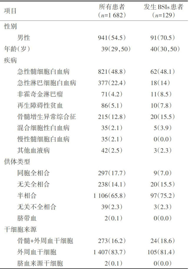 异基因造血干细胞移植后患者血流感染的病原学特征及临床结果