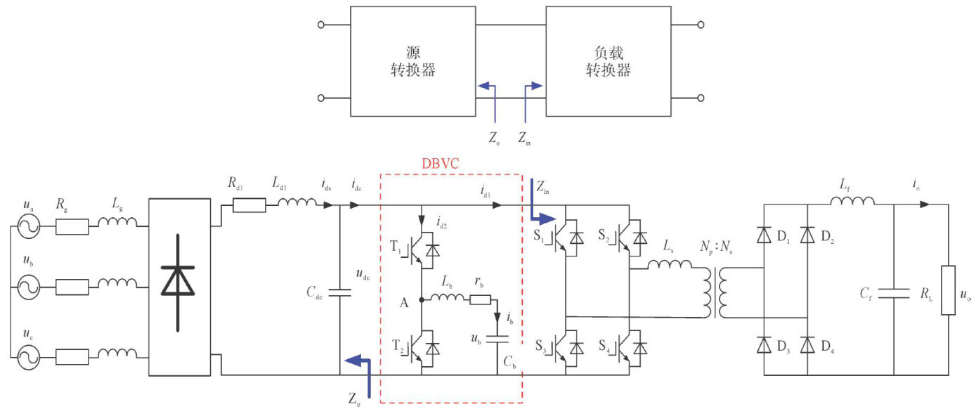 Abstract:With the rapid development of rail transit systems,vehicle requirements for system stability, operational eficiency,and reliability have significantly increased.As the core component of traction systems, the stabilityand reliabilityof onboard AC-DC-ACconvertersareof vital importance. Sincethe input side of the AC-DC-AC converter has a wide-bandwidth input characteristic,and the output-side power converter has a constant-power negative impedance characteristic,the interaction between the two may cause the DC bus voltage of theconverter tooscillte and fluctuate,thereby afecting the stableoperation of theentireconverter system.To this end,this paper proposes an AC-DC-AC converter topology based on a DC bus voltage conditioner(DBVC).By analyzing theclosed-loop input admittance of the load converter and the output impedance of the source converter,this study employs smal-signal modeling and Bode plot analysis(a graphical method for the frequency response of linear systems)and combines it with an active virtual resistorbased control strategy.This approach effectively mitigates DC bus voltage oscilations and fluctuations under variable load conditions, significantly enhancing the voltage stability of onboard AC-DC-AC converters, thereby ensuring reliable and sustained stable operation of the converter system.