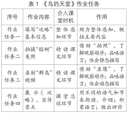 关键词:作业设计;项目化作业;《鸟的天堂》;语文要素