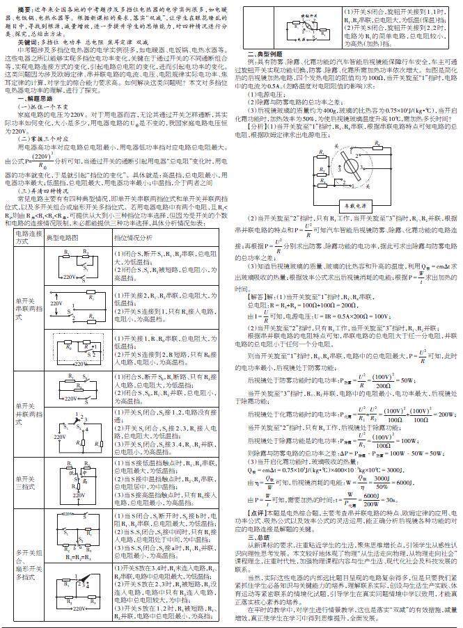 关键词:多挡位 电功率 总电阻 焦耳定律 双减