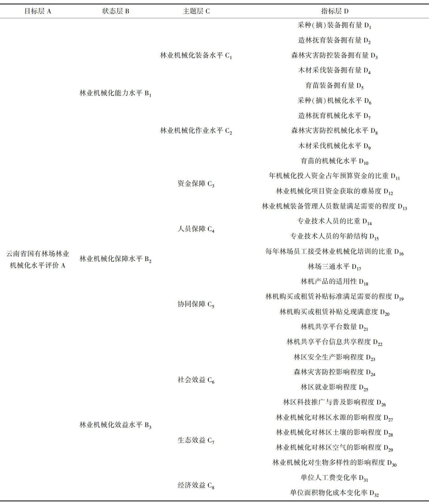 云南省国有林场林业机械化水平评价指标体系及评价方法