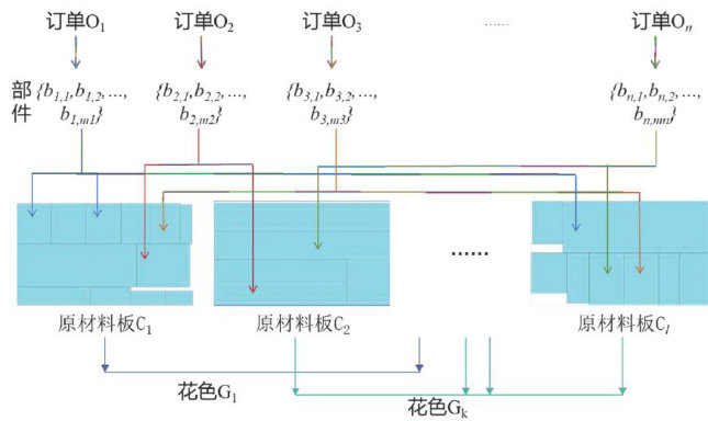 Key words:cutting sequence;board buffering capacity;cutting distance;complete set of time;order aggregation