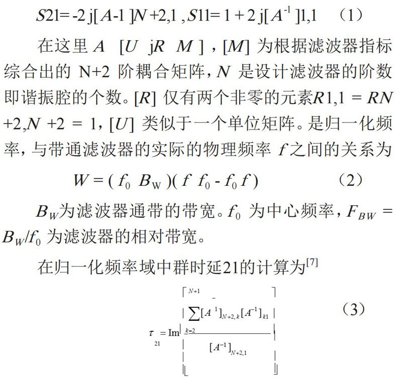 关键词:滤波器;耦合矩阵;S参数;群时延