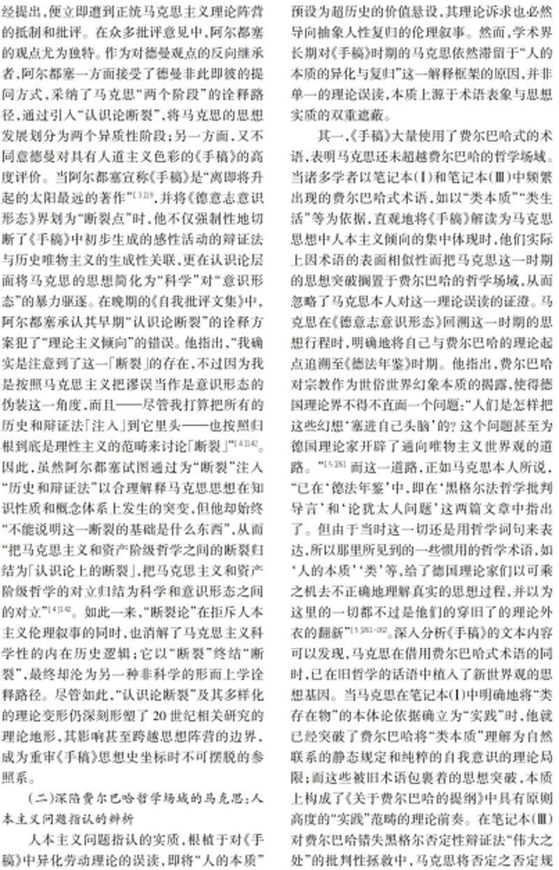 自《1844年经济学哲学手稿》以下简称《手稿》)问世以来,如何界定其思想性质及在马克思思想发展史中的理论地位,成为国内外学术界长期争论的焦点。学术界围绕《手稿》展开的对立性诠释似乎只是文本定性或思想断代的争议,但其实际上关涉马克思思想发展的整体逻辑这一根本性问题。(剩余12643字)