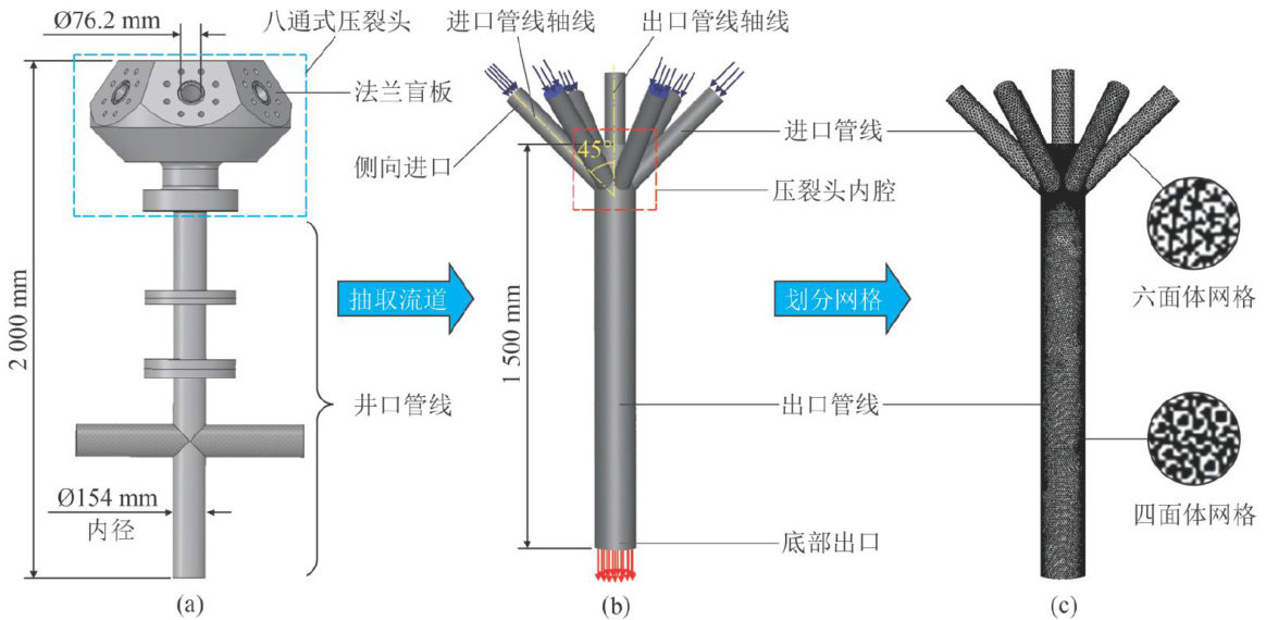 在压裂施工过程中,压裂井口装置需要承受高压流体及砂粒的冲刷,工作环境恶劣且流场复杂,而常用的井口八通式压裂头处作为压裂液汇聚位置,冲蚀磨损尤为严重[1]。(剩余21005字)