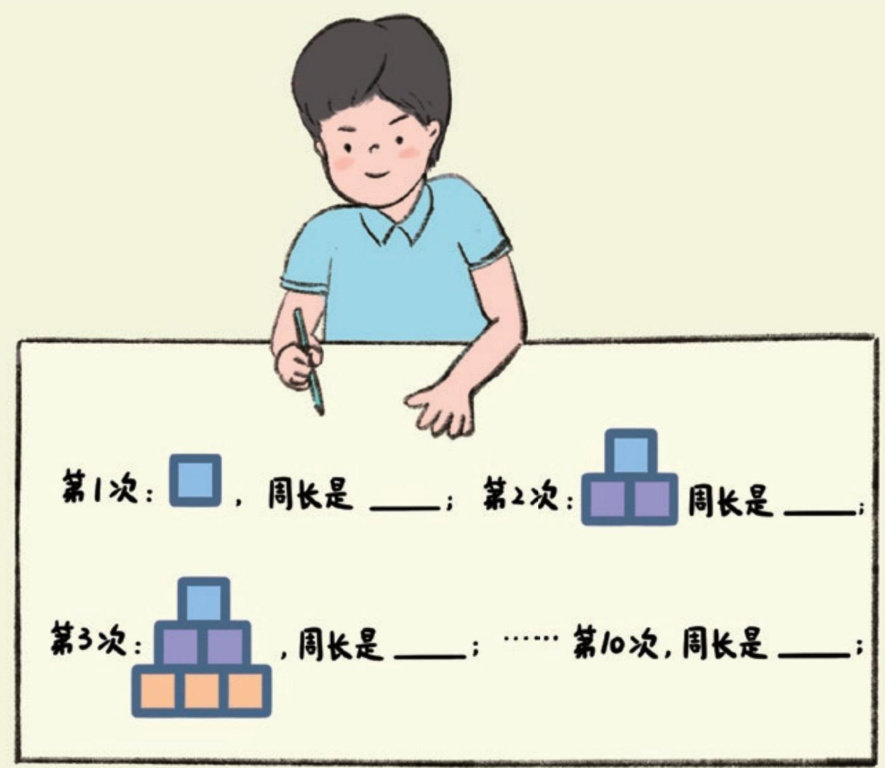 创创在美术课上按照某种规律画了很多边长1厘米的小正方形,你能求出他每次画的图形的周长吗?