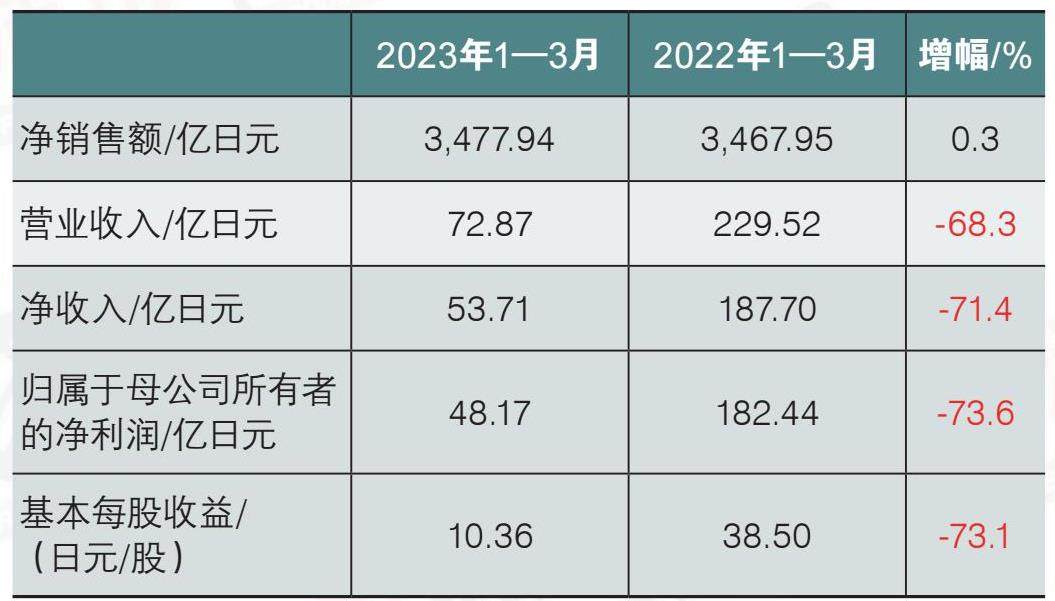 2023年5月10日,花王集团发布2023年第一季度财务报告。2023年第一季度,花王集团的净销售额约为3,477.94亿日元(约合182.15亿元人民币),同比增长0.3%;营业收入约为72.87亿日元,同比下降68.3%;净收入约为53.71亿日元,同比下降71.4%;归属于母公司所有者的净利润约为48.17亿日元,同比下降73.6%。(剩余408字)
