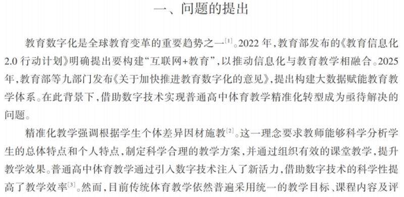 近年来,关于体育精准教学的研究日益增多,但在高中阶段的适用性上仍显不足。首先,现有研究多以通用教育理论为基础,较少关注普通高中体育课程自身所具有的实践性与身体参与特征,导致部分理论模型难以契合高中体育教学的实际需求。(剩余9775字)
