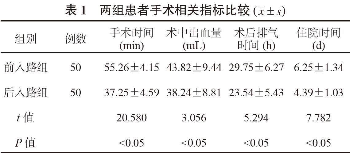 【摘要】目的 探究胆囊后三角解剖入路、胆囊前三角解剖入路方式腹腔镜胆囊切除术对慢性胆囊炎伴胆囊结石患者炎症因子、生存质量的影响,为今后临床治疗慢性胆囊炎伴胆囊结石提供有效的参考依据。方法 选取2022年1月至2023年7月于昆山市第五人民医院就诊的慢性胆囊炎伴胆囊结石患者(100例),据电脑产生的随机数字将患者分为前入路组(胆囊前三角解剖入路行腹腔镜胆囊切除术)和后入路组(胆囊后三角解剖入路行腹腔镜胆囊切除术),各50例,两组患者均于术后随访1个月。(剩余4947字)