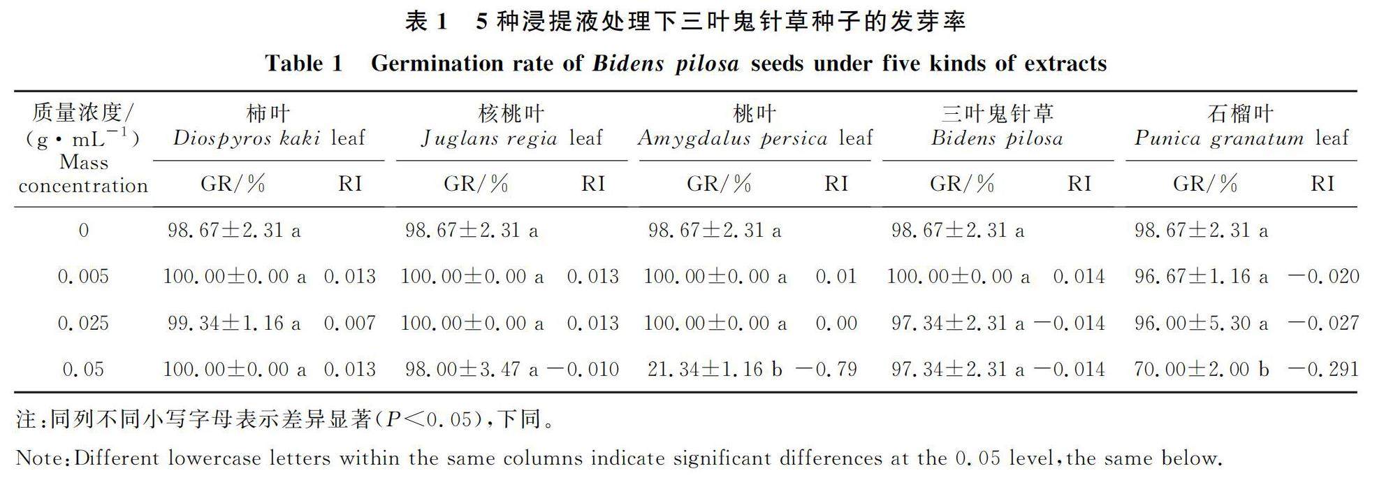 入侵植物三叶鬼针草对4种果树叶片浸提液的化感及其自感响应