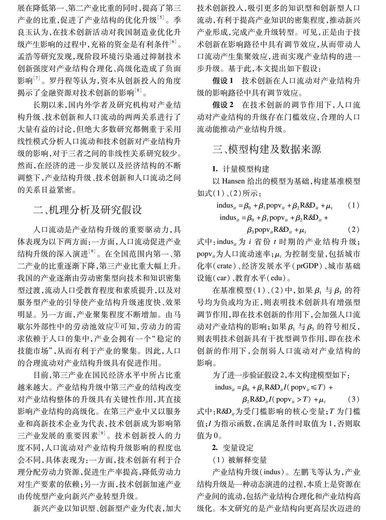 摘 要: 利用2009—2019年中国内地除西藏自治区外30个省、自治区、直辖市的数据,采用调节效应模型和门槛回归方法,探讨人口流动、技术创新与产业结构升级之间的关系。研究发现:技术创新在人口流动对产业结构升级的影响中具有调节效应,对人口流动与产业结构升级进行门槛模型检验,发现存在单门槛效应;当人口流动低于门槛值时,合理的人口流动对产业结构升级具有促进作用;反之,大规模的人口流动对产业结构升级具有抑制作用;在门槛模型分析中,还需要考虑地区的经济发展水平、教育发展水平、城镇化水平和基础设施水平等控制变量对不同地区产业结构升级结果的影响。(剩余12520字)
