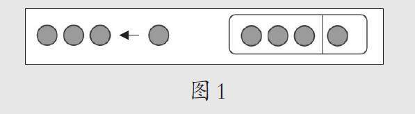 2.摆一摆。你能把刚才看到的过程用彩色小圆片摆一摆吗?