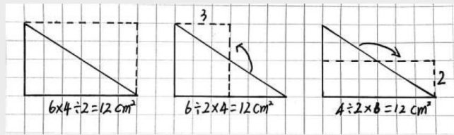 任务一:如图1,推导直角三角形面积 ⊨ 底 x 高 ÷2 。