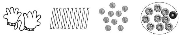 一个一个地数,一根一根地数,一元一元地 数,一颗一颗地数,10个一是10。