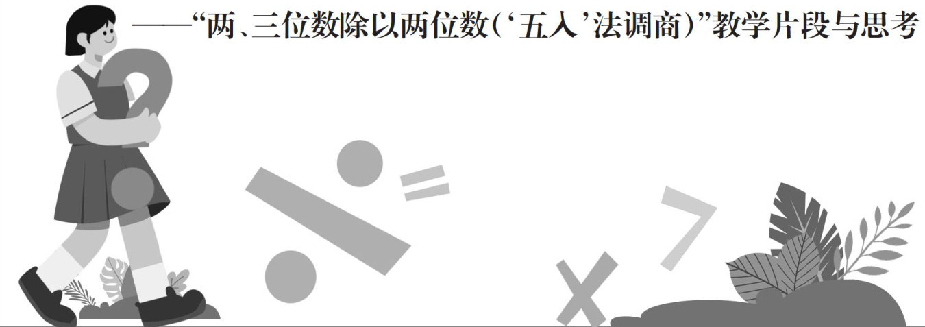 除法运算是四则运算中最后学习的运算,从学习的逻辑顺序和教材内容占比两个维度考量,除法与其他三种运算同样重要,而难度比其他三种运算大。苏教版教材四年级上册第二单元是“两、三位数除以两位数”,这是小学阶段教学整数除法的最后一个单元,相较于前面学习的整数除法,这个单元的笔算除法无法直接利用口诀求商,试商后需要多次调商,计算过程复杂。(剩余4141字)