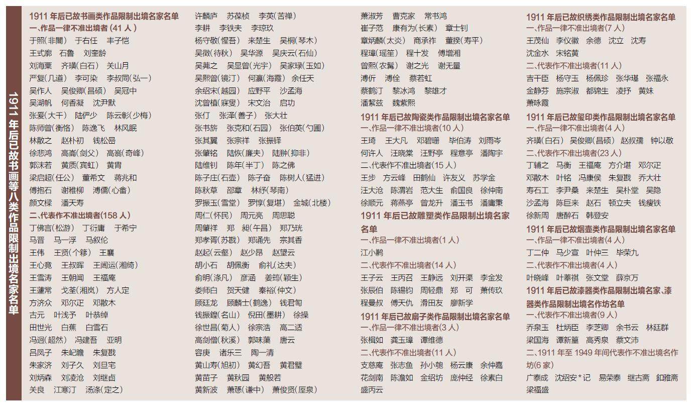 国家文物局颁布1911年后已故书画等八类作品限制出境名家名单