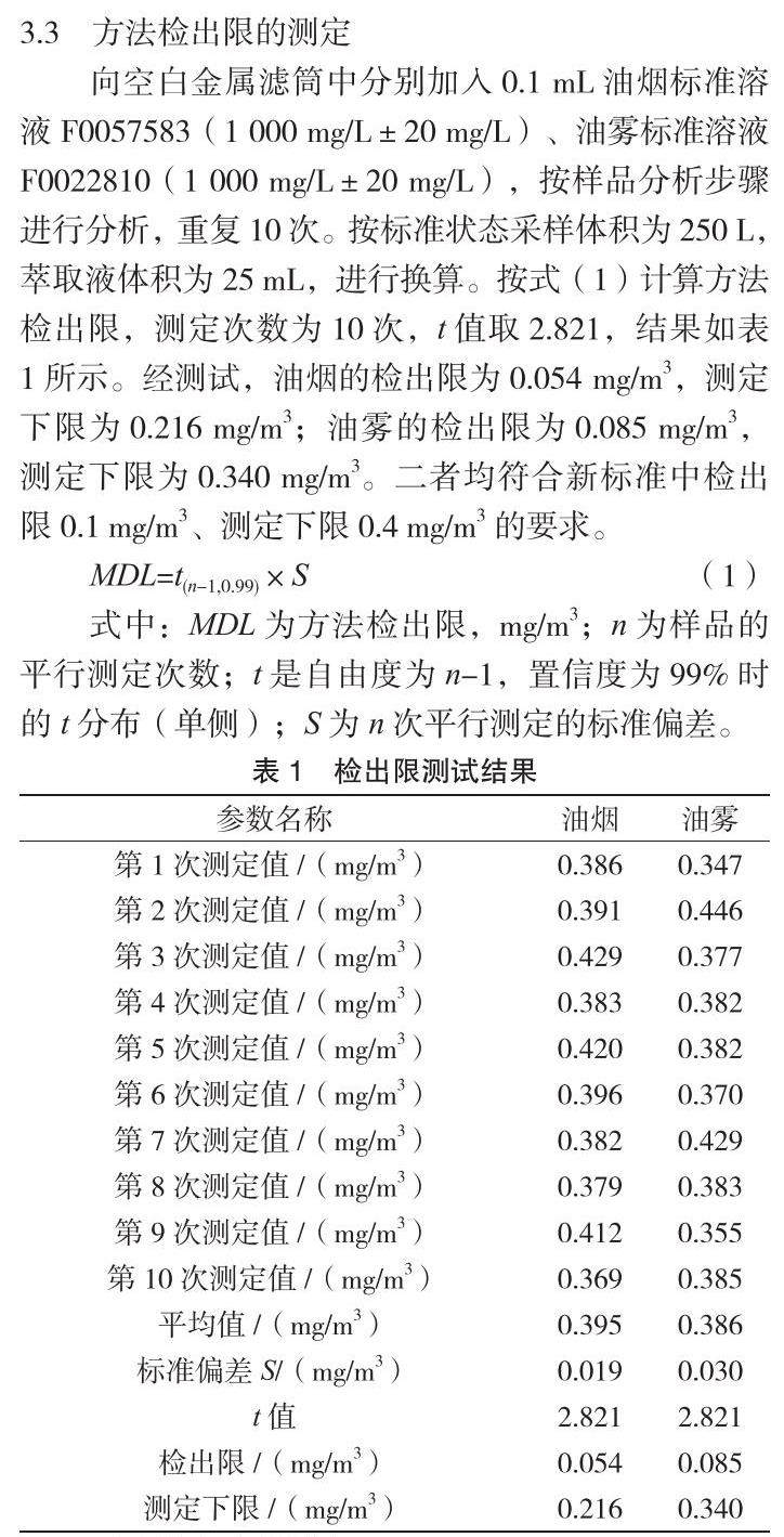 固定污染源废气油烟和油雾的测定研究