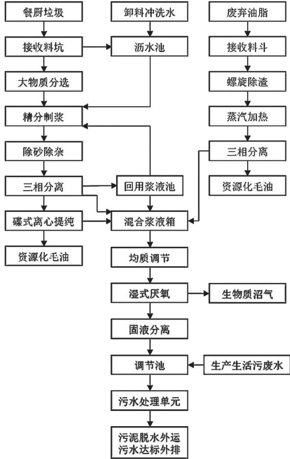 Abstract:Taking Zhuhai cityas an example,this paper conducts research onanaerobic digestion engineering of kitchen waste.Adopting a graded pretreatment process,impurityremovalandoil recovery areachieved through large material sorting,fine pulping,sandandimpurityremoval,and tre-phasecentrifugalseparation.Theehydratedfiltrateandfactory wastewateraredischargedincompliance throughacombinationofcoagulationairflotation,exteral Membrane BioReactor (MBR),andnanofiltration processes,forming aclosed-loop treatment systemof“quality pretreatment—collaborative anaerobic-energy recovery—wastewater purification". The processroute is reasonable and has significant resource utilization benefits.