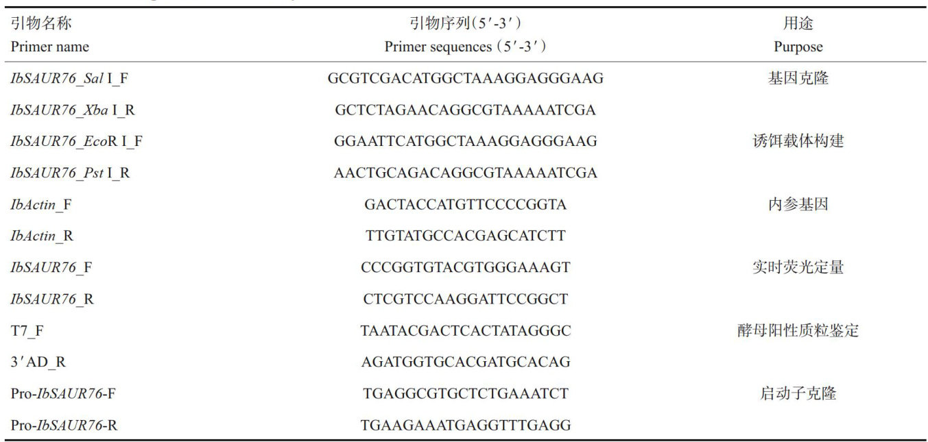 甘薯IbSAUR76基因表达特征及互作蛋白筛选