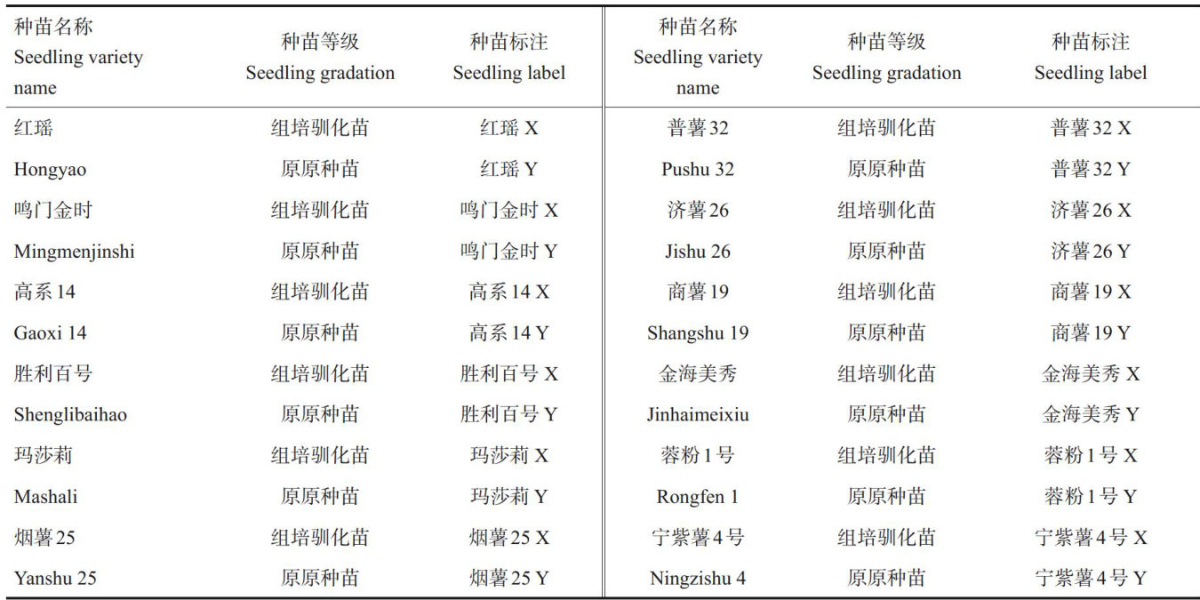 Ningzishu 4 tissue-cultured seedlings,soluble sugar content of Hongyao tissue-cultured seedlings,soluble sugar content and crude protein content of Mashali tissue-cultured seedlings,crude protein content of Pushu 32 tissuecultured seedlings were all significantly lower than minituber-derived seedlings. Crude starch content of Jinhaimeixiu tisue-cultured seedlings was significantly higher than minituber-derived seedlins,but reducing sugar and soluble sugar of tisse-cultured seedlings were significantly lower than minituber-derived sedlings. Dry mattr rate of Mingmenjinshi tisue-cultured seedlings were significantly higher than minituber-derived seedlings.(4) Correlation analysis revealed distinct relationships between photosynthesis parameters and tuber quality;only water use efficiency and dry matter content showed negative correlation in tissue-cultured seedlings,whereas net photosyntheticrate,water use eficiency,and carboxylation efficiency had significant effects on the fresh potato quality of minituber-derived seedlings.This study can provide a theoretical basis for optimizing theuseoftissue-culturedand minituber-derived propagation methods fordifferent sweetpotato varieties.