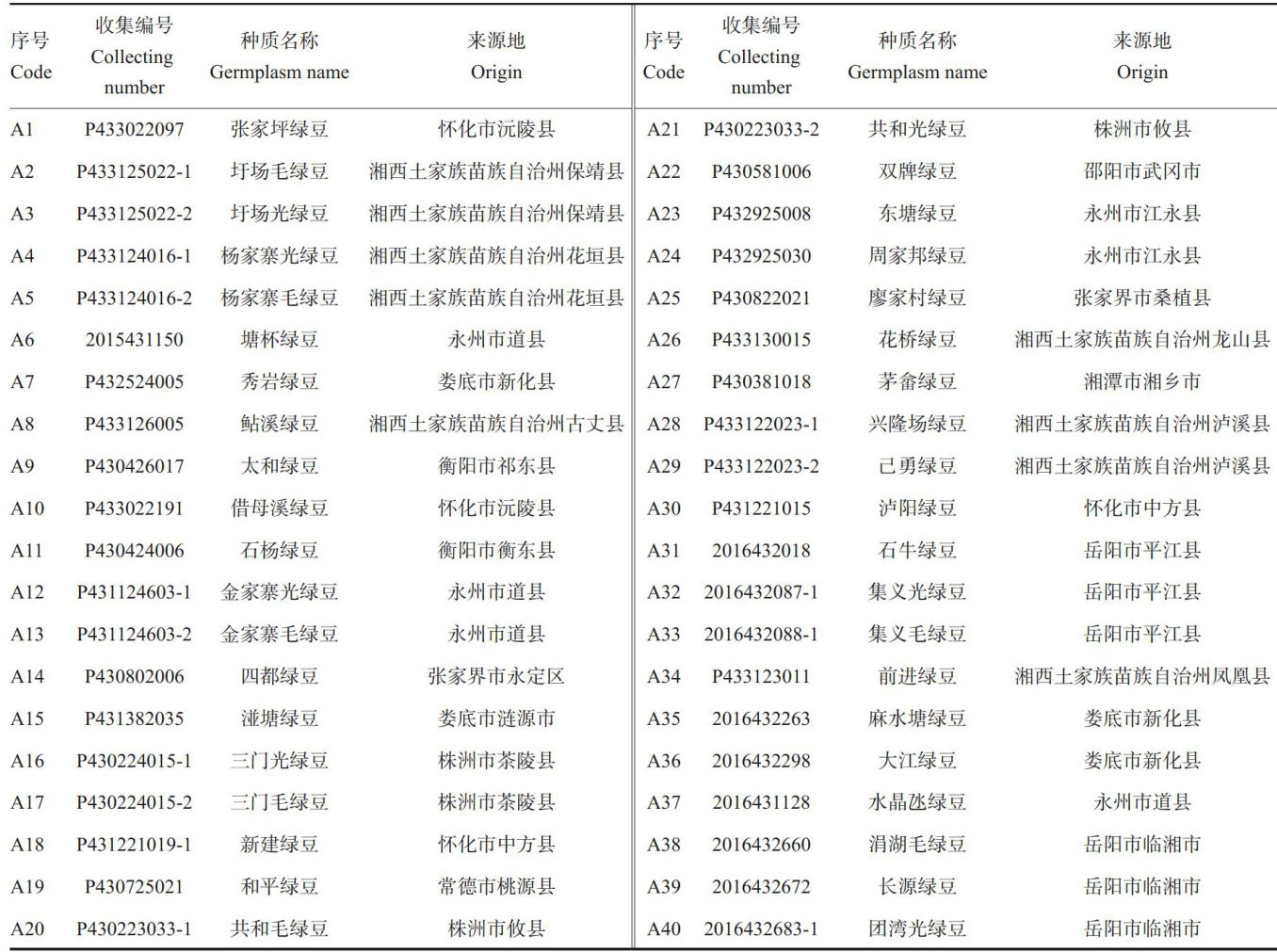 Key words: mung bean;germplasm resources ;identification and evaluation; Hunan province