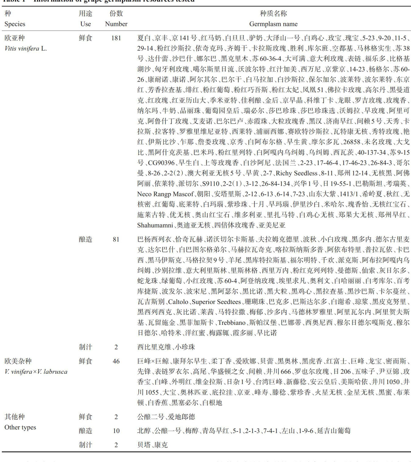 Key words: grape;phenotypic diversity ; correlation analysis;comprehensive evaluation