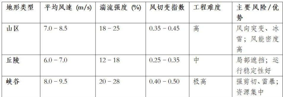 复杂地形下的风速空间变化显著,风切变与湍流强度增加,使机组受力波动与疲劳累积风险上升。目前,复杂地形风电场普遍存在个别风电机组低效运行的问题,即实际发电量明显低于设计值。地质条件复杂、施工运输受限,也使工程实施面临更高难度。已有研究多集中于风资源评估与单点风速模拟,而针对不同地形条件的整体适应性研究仍相对不足[。(剩余2656字)