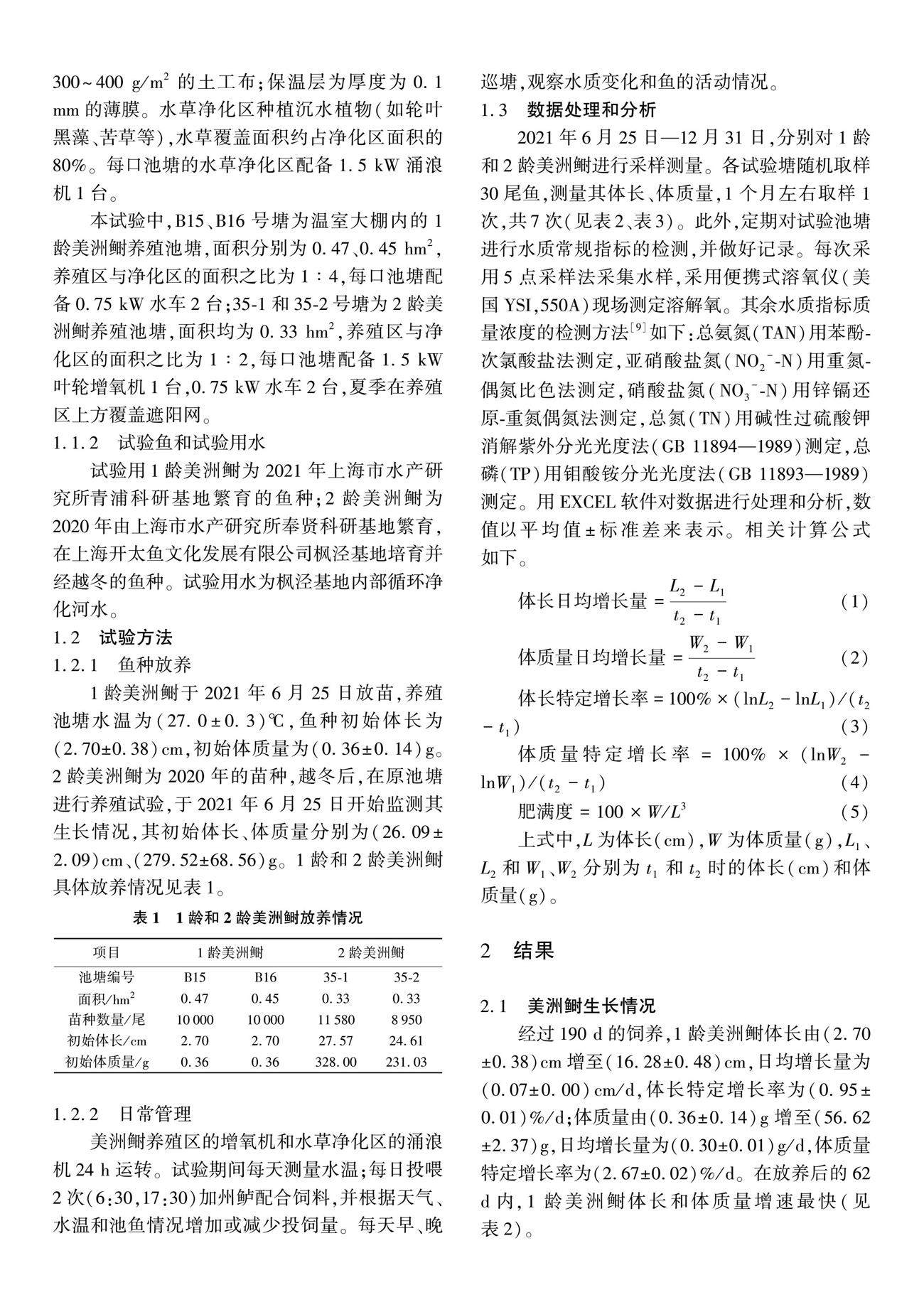 1龄和2龄美洲鲥草塘围网生态养殖试验