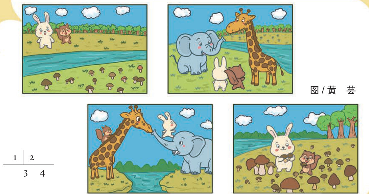 2.展开联想:小作者可以尝试化身小侦探,思考图片中有哪些角色?小动物们在哪里?小动物们又在做什么?大家可以尝试把河流联想为“困难”,而把蘑菇想象为“收获”,从这些元素中提炼出“合作互补”“克服困难”等主题。(剩余3048字)